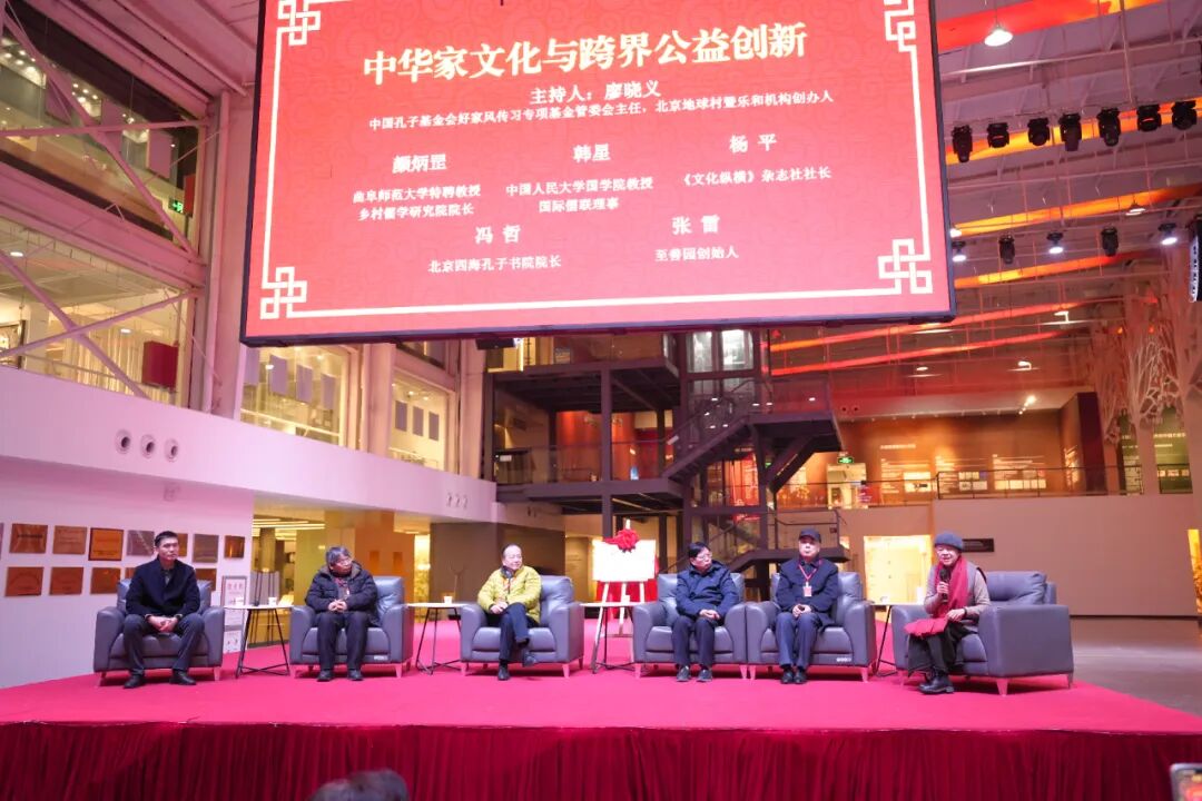 圆桌论坛一以“家文化与跨界公益创新”为主题,由廖晓义主持。中国人民大学国学院教授韩星,曲阜师范大学特聘教授、乡村儒学研究院院长颜炳罡,北京四海孔子书院院长冯哲,至善园创始人张雷等嘉宾分享各自在国学研究、乡村儒学、文化传播等领域的实践,围绕构建“天下一家”的大同社会目标,探讨通过学术研究与传播重建家庭伦理、以教育转变观念等实践路径。